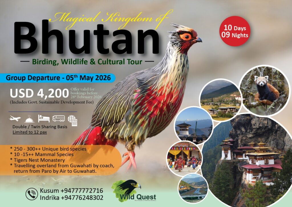 Wild Quest was initiated with the determination and eagerness in overseeing the tourism industry in Sri Lanka to take responsibility and to persuade all concerned to join hands in creating a new environmentally friendly nature tourism chapter in the future; with the aim of showing the “duty of everyone to take care of planet earth” by reducing the carbon footprint, conserving nature and protecting wildlife.